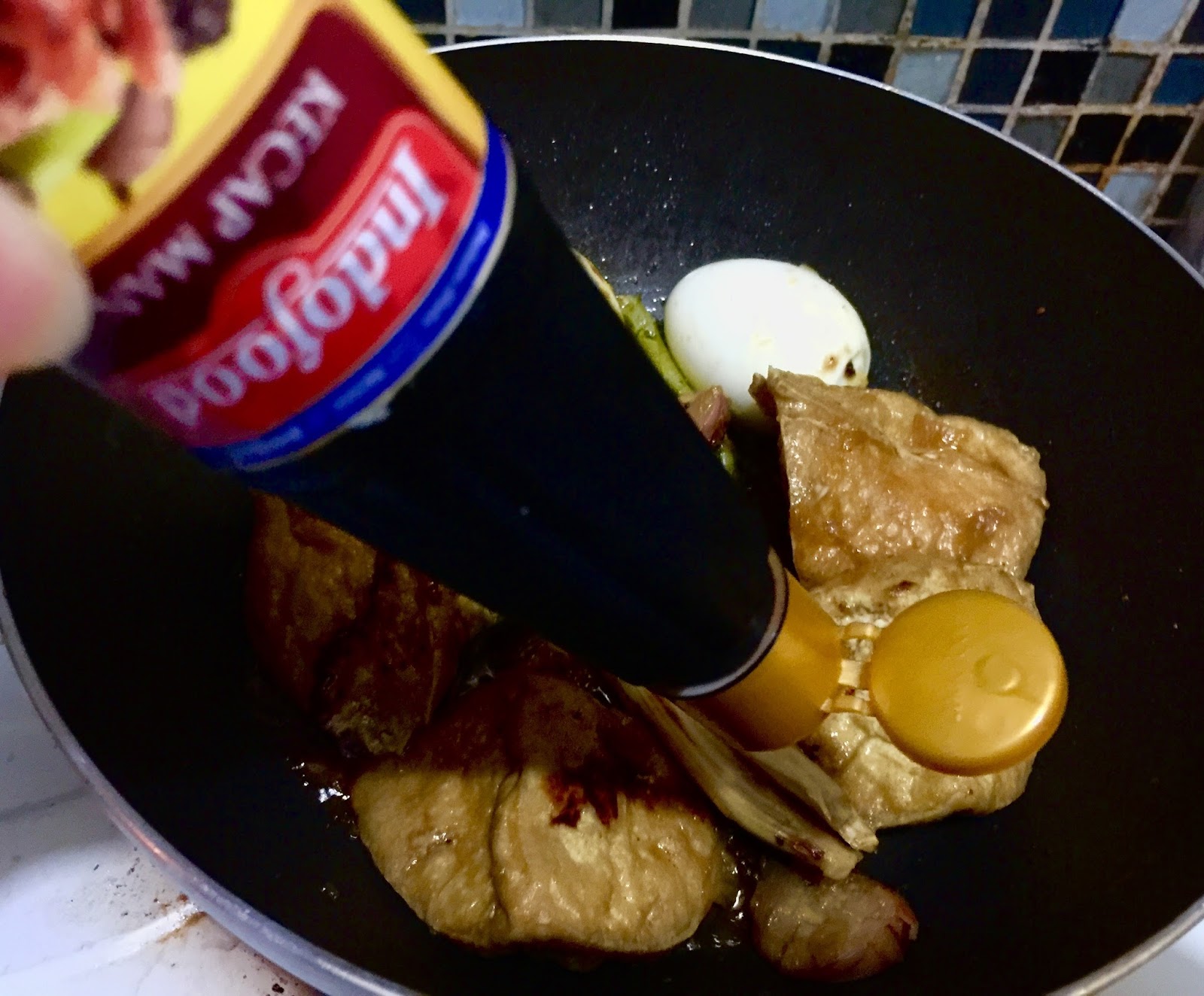 Tahu telur terasa makin lezat dengan perpaduan rasa manis kecap dan gurihnya kaldu ayam.